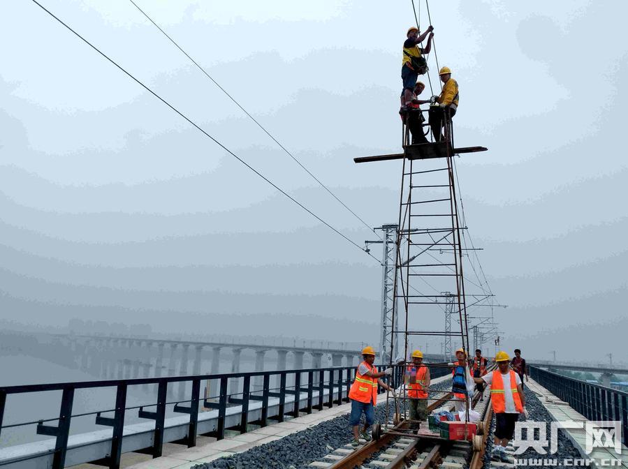 成都供電段青工戰(zhàn)高溫保鐵路新線開(kāi)通(央廣網(wǎng)發(fā) 葉果攝) 央廣網(wǎng)重慶7月12日消息(記者劉湛 通訊員葉果)7月11日,四川南充地區(qū)迎來(lái)40℃的高溫天氣,成都供電段南充供電車間接觸網(wǎng)專業(yè)青工們,奮戰(zhàn)在蘭(州)渝(重慶)鐵路南充東站至南充北站的聯(lián)絡(luò)線上,對(duì)接觸網(wǎng)設(shè)備進(jìn)行標(biāo)準(zhǔn)化平推工作,確保鐵路新線按期開(kāi)通。 -
