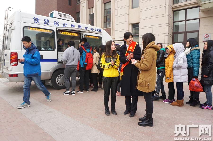 太原南站將鐵路移動(dòng)售票車開進(jìn)22所大專院校 讓學(xué)生少跑路、少受凍(央廣網(wǎng)記者 李楠 攝)