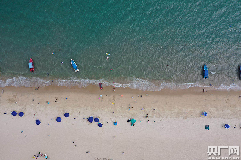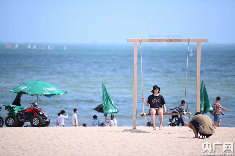 在海邊休閑的人們。(央廣網(wǎng)發(fā) 官文清攝)