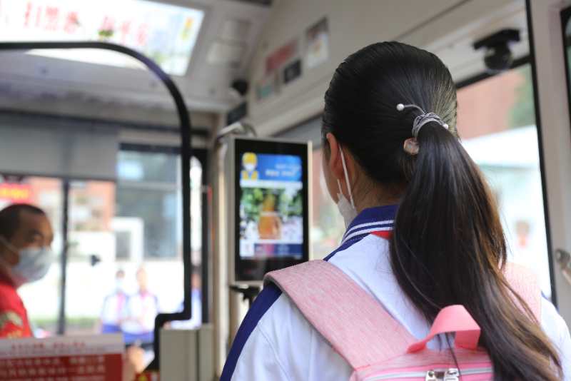 每輛如約助學專線均安裝有廣州公交集團電車公司首創(chuàng)的人臉識別測溫儀,設(shè)備最快1秒即可完成掃描探測溫度,同步語音向車長報送健康情況。同時,識別回傳數(shù)據(jù)到防疫后臺保存,可以進行信息溯源、智能跟蹤,為學生上下課保駕護航。