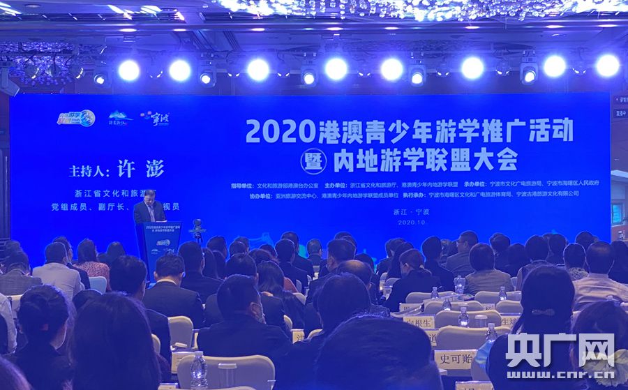 央廣網(wǎng)寧波10月27日消息(記者曹美麗 通訊員張正偉)10月27日上午,2020港澳青少年游學(xué)推廣活動暨內(nèi)地游學(xué)聯(lián)盟大會在寧波舉行。來自全國各地和港澳地區(qū)的文化旅游、教育等部門嘉賓和文旅企業(yè)機(jī)構(gòu)負(fù)責(zé)人濟(jì)濟(jì)一堂,就擴(kuò)大內(nèi)地與港澳青少年友好交流和后疫情時(shí)代共拓研學(xué)游市場建言獻(xiàn)策。
