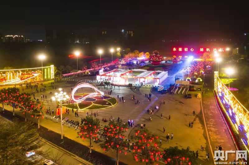 高達(dá)15米的大花籃是知識(shí)城分會(huì)場的亮點(diǎn)之一。待華燈初上,圍繞花籃萬盞燈籠點(diǎn)亮,呈現(xiàn)火樹銀花的勝景。