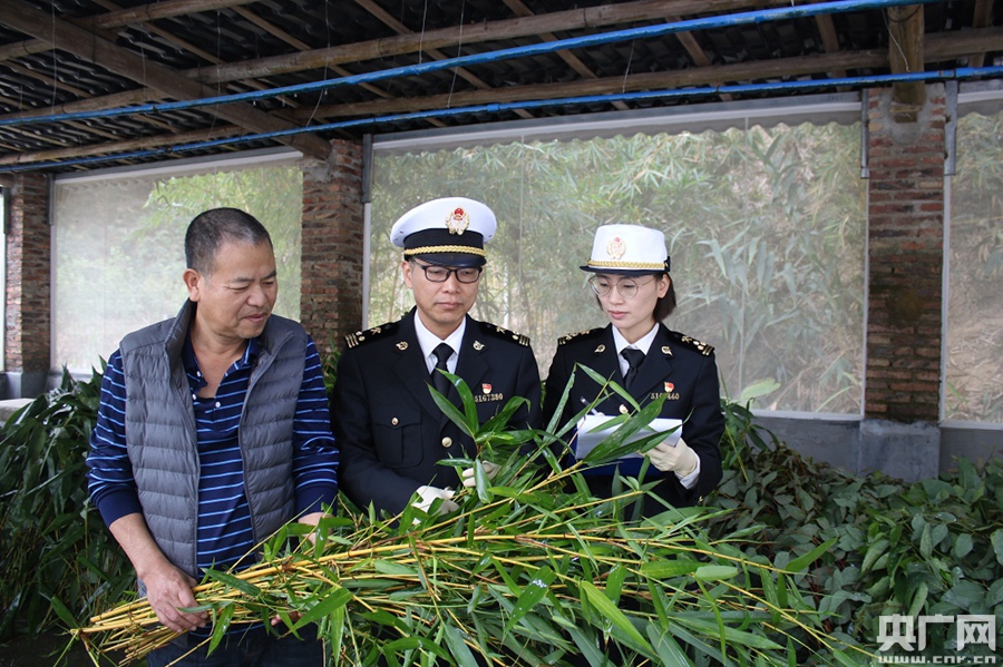 “我們?nèi)粘1O(jiān)管主要查看竹葉有沒有病蟲害,例如竹葉表面有沒有纏有白絲的葉苞,如果有就表明葉苞里面可能包裹著竹螟幼蟲。這是一種能嚴(yán)重危害竹子的卷葉蟲,要及時做出處理!睋荛_眼前密密麻麻的竹叢,廣州海關(guān)所屬從化海關(guān)屬地外勤科副科長徐蕾拿起竹子前段較嫩的竹葉,仔細(xì)翻開查看,“這些竹葉都十分健康、鮮嫩,是大熊貓最喜愛的食物!