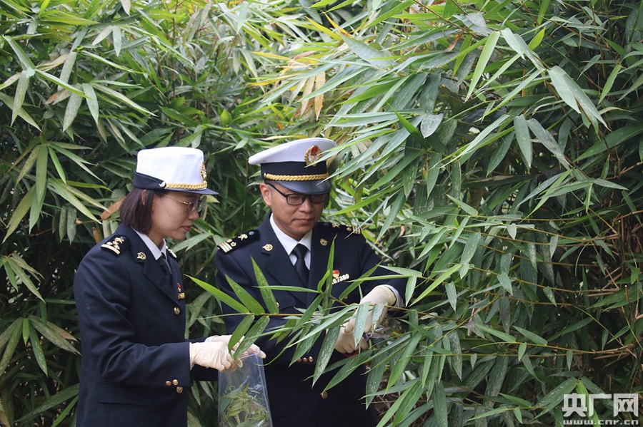 徐蕾和同事用剪刀抽取長度約50厘米連枝帶葉的竹枝,放入取樣袋,“我們需要抽取約1公斤樣品,送廣州海關(guān)技術(shù)中心進行農(nóng)殘項目檢測!