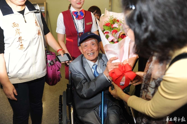 4月19日晚9點(diǎn),成都雙流國(guó)際機(jī)場(chǎng),一架從寶島臺(tái)灣飛來(lái)的飛機(jī),穩(wěn)穩(wěn)降落在四川的土地上,胡定遠(yuǎn)蹣跚著從機(jī)艙走出,眼前的景象令這位老人眼眶濕潤(rùn),“我回家了!