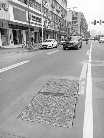 昨天上午,記者根據(jù)來(lái)電線索,在漢陽(yáng)大道532號(hào)花前樹(shù)下小區(qū)門(mén)口,看到了公交車(chē)專(zhuān)道上那幾個(gè)令王先生等居民鬧心的窨井蓋。只要有車(chē)子碾過(guò),窨井蓋就會(huì)發(fā)出巨大的響聲。
