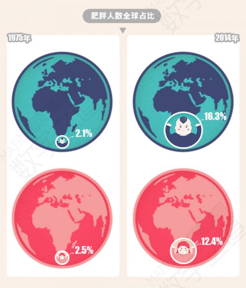 全球肥胖人數(shù)從1975年1億多增加到2014年的6.41億,中美兩國分別以8960萬和8780萬位列第一和第二。當(dāng)?shù)谝灰彩且驗槲覀內(nèi)硕啵袊?3.7億人,美國僅有3.2億,按比例算還是美國贏。