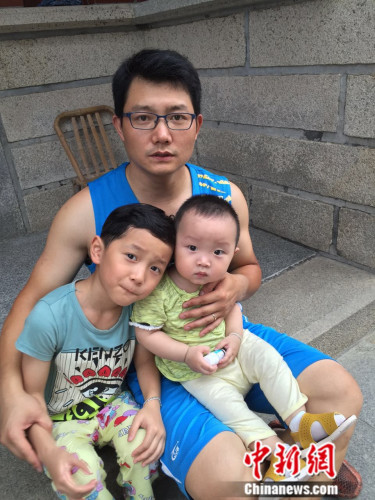圖為二孩“奶爸”和兩個可愛的孩子。呂春榮 攝