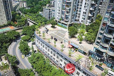 記者探訪(fǎng):這條路實(shí)為南岸區(qū)南濱路聚豐江山里小區(qū)道路,位于該小區(qū)3棟附近。重慶晚報(bào)記者看到,屋頂公路寬約10米,與樓下往彈子石方向的主干道海棠溪新街呼應(yīng),靠樓的一側(cè)是小區(qū)車(chē)庫(kù)出入口,遠(yuǎn)觀有種樓上樓下皆有路的感覺(jué)。小區(qū)一位保安表示,這條路的下面是小區(qū)的車(chē)庫(kù),車(chē)庫(kù)下是商鋪。