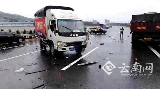 云南網(wǎng)訊(記者 熊強)近日,云南部分州市迎持續(xù)降雨天氣,雨天行車需注意安全。7月2日上午10點左右,昆曲高速軍馬場路段發(fā)生6車相撞事故,造成3人輕傷。隨后,昆曲大隊對該路段采取臨時交通管制,中午12點左右,事故處理完畢,交通得以恢復(fù)。