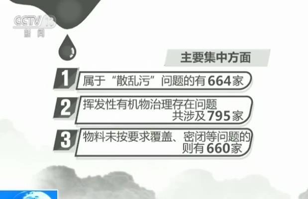 據(jù)了解,第六輪次的強(qiáng)化督查從6月23號(hào)持續(xù)到了7月6號(hào),接受檢查的5879家企業(yè)和單位中,有2627家存在環(huán)境問(wèn)題,其中80%以上的問(wèn)題,主要集中在3個(gè)方面: