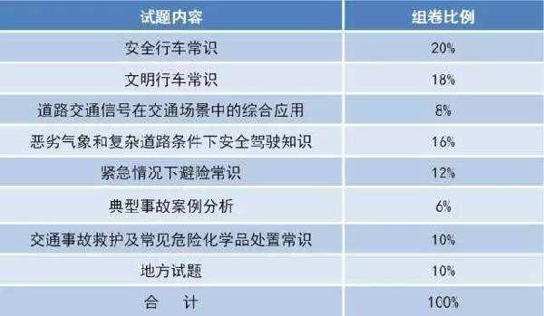 安全文明駕駛常識(shí)考試試題內(nèi)容比例