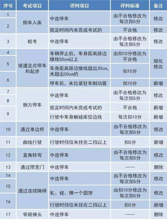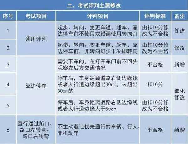 道路駕駛技能考試操作和評(píng)判主要修改一覽