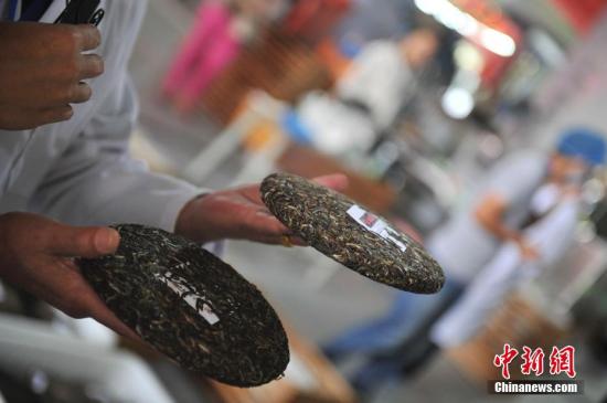 資料圖:等待包裝的普洱茶餅。中新社記者 劉冉陽 攝
