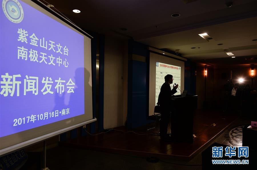 10月16日,在位于南京市的中科院紫金山天文臺(tái)舉行的新聞發(fā)布會(huì)現(xiàn)場(chǎng),中科院南極天文中心主任王力帆介紹相關(guān)研究情況。