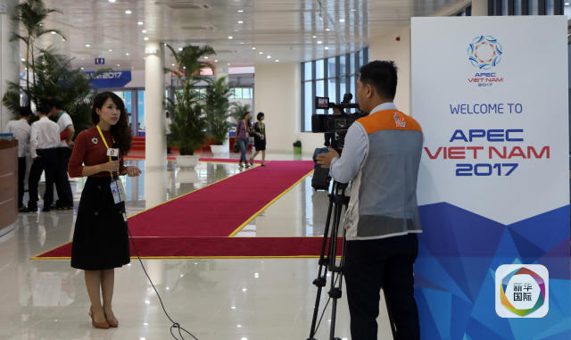 11月5日,在越南峴港,媒體記者在亞太經(jīng)合組織領(lǐng)導(dǎo)人會議周國際媒體中心進行報道。新華社記者李鵬攝