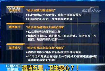 好了,因?yàn)榘婷嫠?我們實(shí)在是沒(méi)法再列出來(lái)它還能做什么事。那么所有的這些細(xì)節(jié),哈爾濱的衛(wèi)計(jì)委官方回應(yīng),是確定屬實(shí)。那么在這個(gè)屬實(shí)的情況下,我們?cè)賮?lái)看一下這三家涉事酒店的官方微博的回應(yīng)是什么。