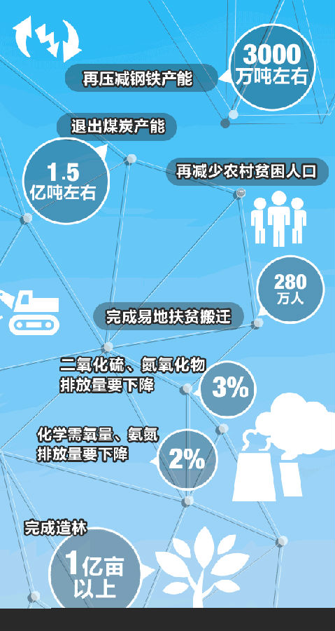 去產(chǎn)能:再壓減鋼鐵產(chǎn)能3000萬(wàn)噸左右,退出煤炭產(chǎn)能1.5億噸左右。