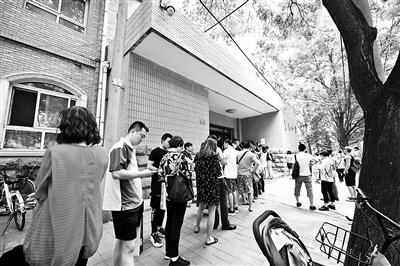 資料圖:排隊(duì)的家長(zhǎng)。圖片來(lái)源:北京青年報(bào) 攝影/本報(bào)記者 袁藝