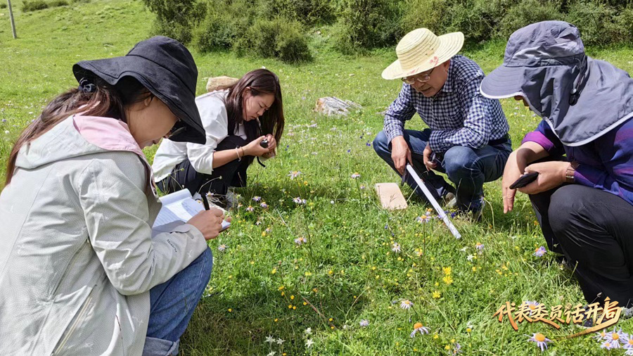 董全民(右二)和團隊在山間草地調(diào)研(央廣網(wǎng)發(fā) 受訪者供圖)