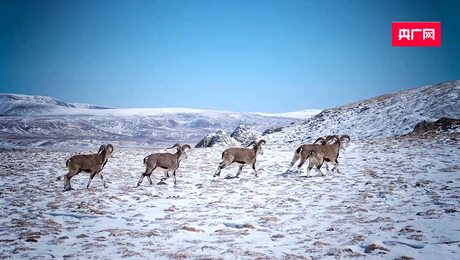 【發(fā)現(xiàn)春之美】雪未融 春已來 巖羊奔馳高原峭壁
