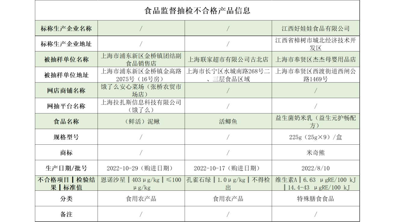 據(jù)“上海市場(chǎng)監(jiān)管”微信公眾號(hào)3月29日消息,上海市市場(chǎng)監(jiān)督管理局發(fā)布2023年第12期省級(jí)食品安全抽檢信息。