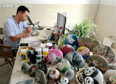 郝壯幾乎把所有業(yè)余時間都用在了手繪石頭上,不少工友都認為他“不務正業(yè)”!案闼囆g真的有前途嗎?”王麗也曾一度懷疑老公的選擇,“我十分支持他的愛好,但看他下班后搗鼓那些石頭,又不能變成錢,畢竟要養(yǎng)家糊口啊,讓人著急啊。