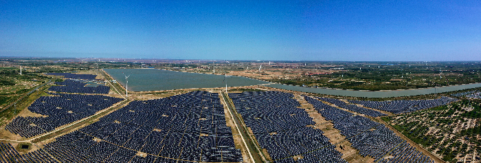 作為濱州首個獲批的國家大型光伏基地項目,華能濱州85萬千瓦光伏項目每年可發(fā)電12.86億千瓦時。圖為華能沾化清風湖200兆瓦風光同場項目(資料圖)