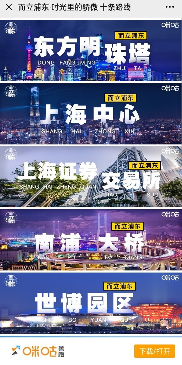 除視頻展播外,“而立浦東·時(shí)光里的驕傲”線上跑活動(dòng)也在咪咕善跑等平臺(tái)推出,以《而立浦東》紀(jì)錄片中出現(xiàn)的地標(biāo)性建筑為打卡目標(biāo),如上海中心、東方明珠塔、世博園等,這些打卡點(diǎn)或是伴隨著浦東開(kāi)發(fā)開(kāi)放而誕生的重大項(xiàng)目,或是浦東開(kāi)發(fā)開(kāi)放之后豎立的新地標(biāo)性建筑,見(jiàn)證著浦東開(kāi)發(fā)開(kāi)放30年的歷史變遷。參與者能夠在運(yùn)動(dòng)中感受上海的城市脈搏,用足跡丈量浦東的發(fā)展歷程,同時(shí)領(lǐng)略浦東開(kāi)發(fā)開(kāi)放的恢弘成就。