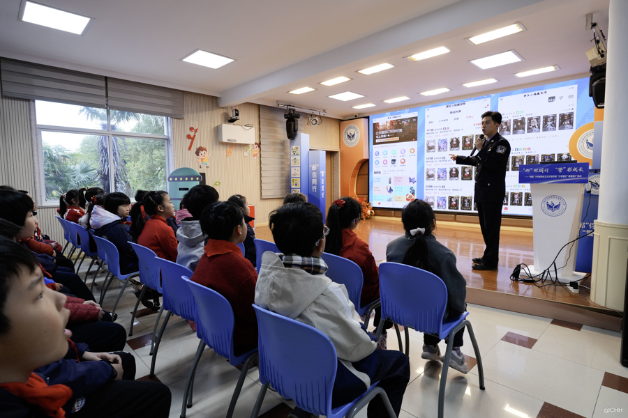 在位于浦東新區(qū)的上南五村小學(xué),伴隨上課鈴聲,浦東警方精心準備的“開學(xué)第一課”如約開講,為孩子們送上滿滿的安全“干貨”。