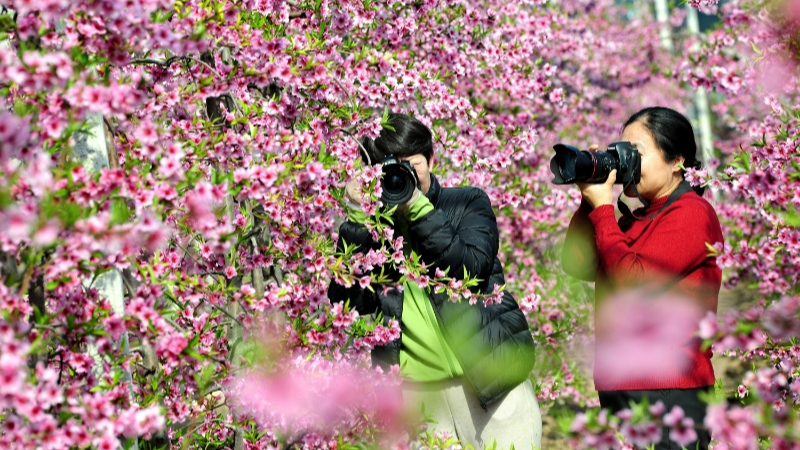 山西萬(wàn)榮暖意融融桃花開(kāi)
