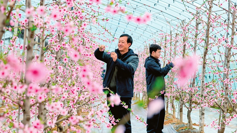 山西萬榮:大棚藏春色 桃花綻芬芳