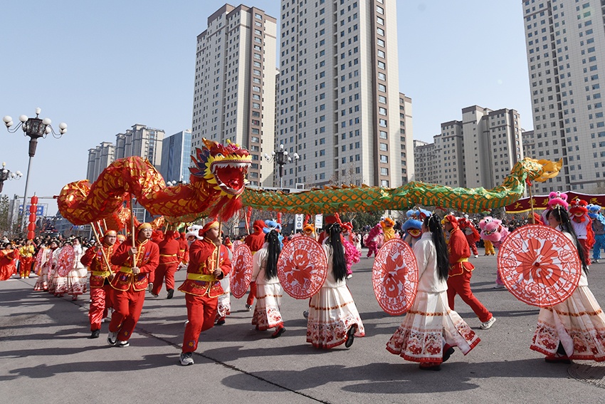 氣勢磅礴的威風鑼鼓、騰躍翻飛的龍舞獅躍、靈動詼諧的旱船秧歌、精妙絕倫的非遺絕活輪番亮相。