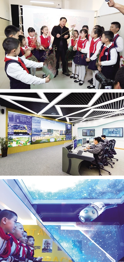 走進該校航天科技體驗館,全息投影讓人不禁眼前一亮,仿佛置身宇宙,探尋宇宙的奧秘,里面紀錄了太陽系、人造衛(wèi)星、中國航天里程碑事件等信息,讓同學們身臨其境、趣味十足地學習航天知識。據(jù)航天城第四小學校長楊勇介紹,學校積極對接區(qū)域智慧教育系統(tǒng),堅持“深化應用,融合創(chuàng)新”,根據(jù)學校的特色來建設智慧校園。目前正在開發(fā)當中的智慧校園平臺,會將評價的積分系統(tǒng)與虛擬云幣銀行機制結合,做到可兌換可交易,利用校園云幣記錄學生成長,進行在線實時評價,既能達到激勵學生和發(fā)展財經(jīng)素養(yǎng)的效果,又能實現(xiàn)學生生涯規(guī)劃大數(shù)據(jù)分析。