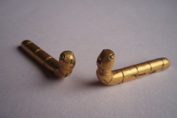記者從陜西歷史博物館了解到,習近平主席提及的鎏金銅蠶1984年出土于陜西省石泉縣,通長5.6厘米,胸圍1.9厘米,胸高1.8厘米,全身首尾共計9個腹節(jié),胸腳、腹腳、尾腳均完整,體態(tài)為仰頭或吐絲狀,制作精致,造型逼真,專家鑒定為漢代鎏金銅蠶。鎏金銅蠶的出土,將陜西石泉縣這一養(yǎng)蠶圣地的養(yǎng)蠶歷史推前到漢代。