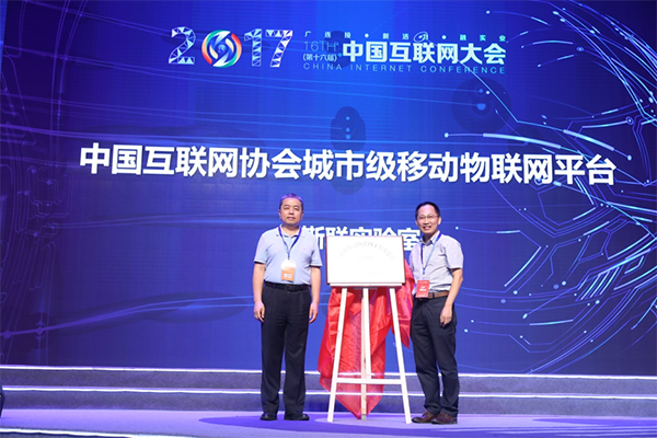 中國互聯(lián)網(wǎng)協(xié)會秘書長盧衛(wèi)與特斯聯(lián)(北京)科技有限公司副總裁王永強為“城市級移動物聯(lián)網(wǎng)平臺特斯聯(lián)實驗室”揭牌