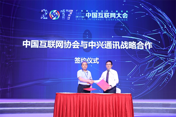 中國互聯(lián)網(wǎng)協(xié)會秘書長盧衛(wèi)與中興通訊股份有限公司高級副總裁兼政企中國事業(yè)部總經(jīng)理朱永濤簽署戰(zhàn)略合作協(xié)議