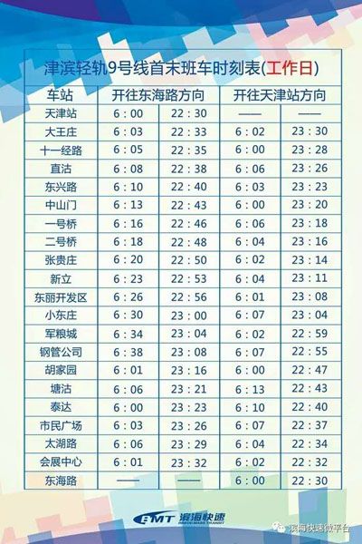 津濱輕軌9號線運行時刻表(工作日)