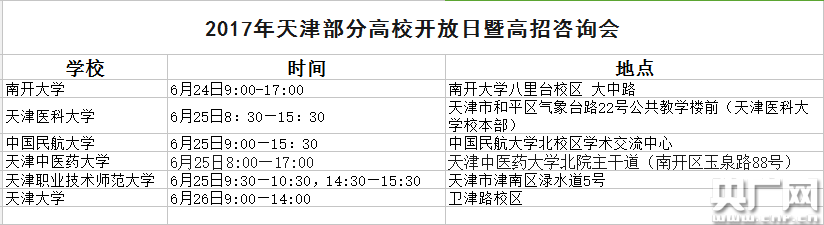 三、電臺訪談:天津人民廣播電臺將邀請市教育招生考試院、警備區(qū)招生辦、高校招生辦負(fù)責(zé)同志介紹高校招生情況,解答考生填報志愿的相關(guān)問題。具體播出時間:6月24日至26日,天津人民廣播電臺新聞廣播(每晚19:00—20:00);6月22日至27日,天津人民廣播電臺經(jīng)濟廣播(每天早晨7:30— 8:30);6月21日至23日、27日,天津市廣播電視臺濱海廣播《都市零距離》(每天下午16:00—17:00)。