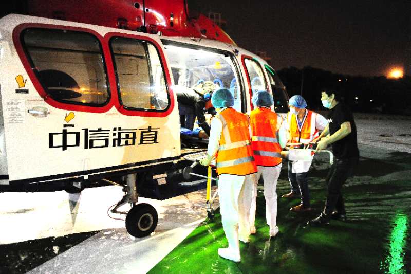 6月9日凌晨1點(diǎn)許,一位突發(fā)心肌梗死的39歲在海上石油平臺(tái)值守的工人搭乘直升飛機(jī)從200公里外的海上被轉(zhuǎn)運(yùn)至天津泰達(dá)國(guó)際心血管病醫(yī)院(以下簡(jiǎn)稱泰心醫(yī)院),通過(guò)醫(yī)療綠色通道順利接受緊急搶救。在置入一枚心臟支架后,患者轉(zhuǎn)危為安。這是繼5月9日成功搶救一名石油平臺(tái)海油工人之后,泰心醫(yī)院與北大醫(yī)療海洋石油醫(yī)院聯(lián)手借助“立體120”實(shí)施的又一次成功救援。