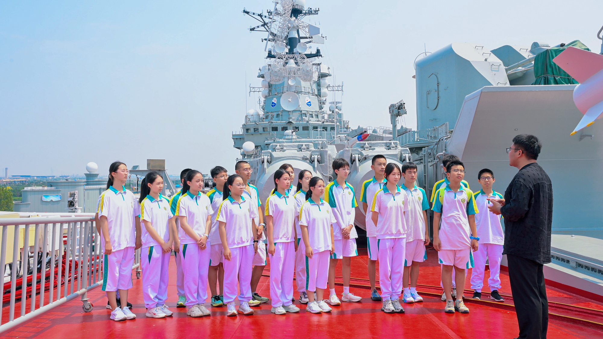 日前,天津師范大學(xué)馬克思主義學(xué)院聯(lián)合天津市實(shí)驗(yàn)中學(xué)在天津泰達(dá)航母主題公園開展“析史明理,解碼強(qiáng)軍路”行走的思政課。