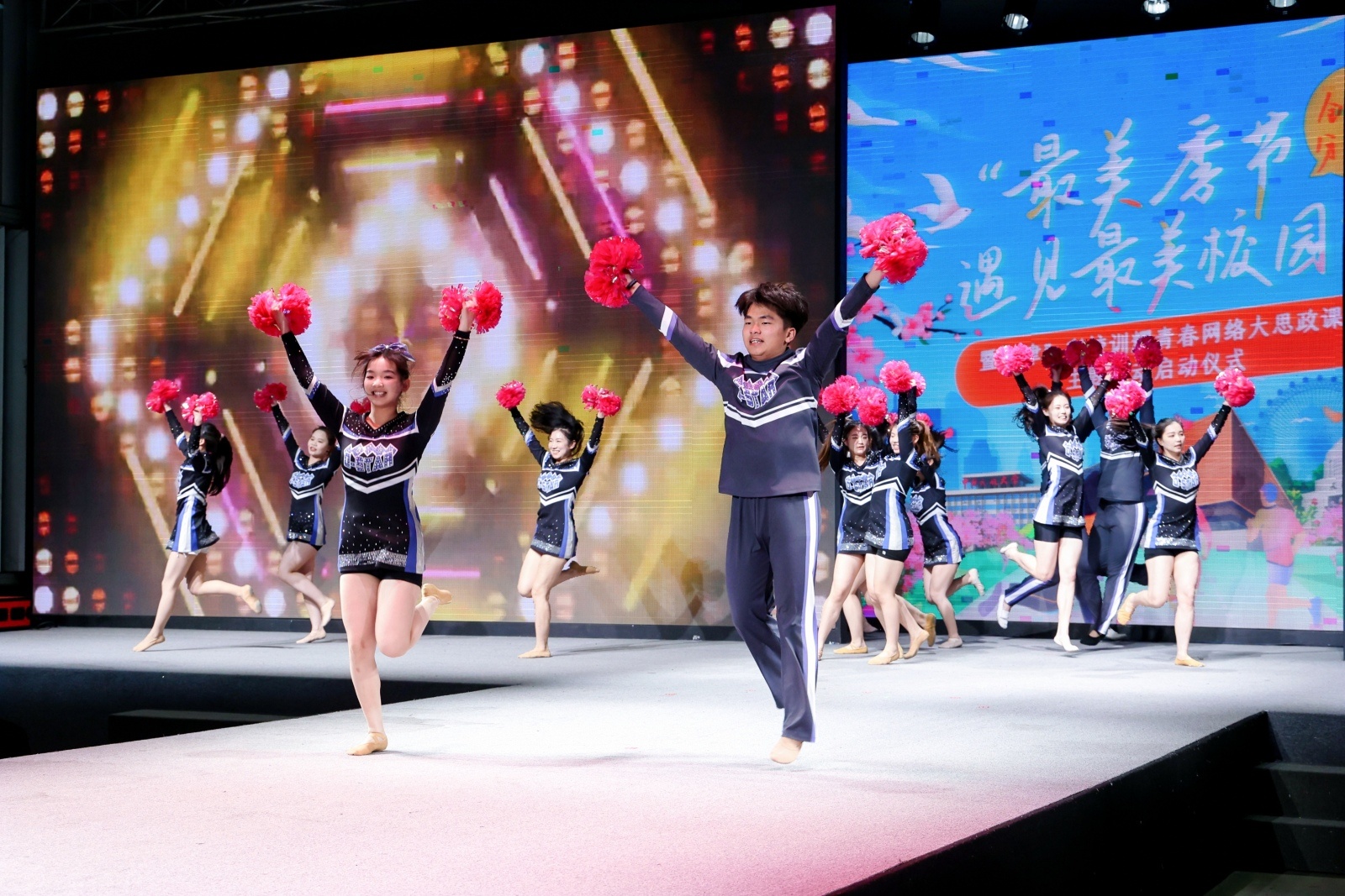天津體育學(xué)院的啦啦操隊(duì)員化身活力精靈,表演啦啦操《活力無限》。