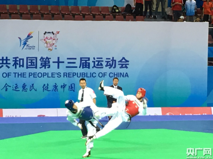 央廣網(wǎng)天津9月5日消息(記者褚夫晴)5日晚,第十三屆全運(yùn)會(huì)跆拳道項(xiàng)目決出兩塊金牌,在男子68公斤級(jí)決賽中,里約奧運(yùn)會(huì)冠軍、新科世錦賽冠軍趙帥8:5力克廣東趙攀鋒,首奪該項(xiàng)全運(yùn)會(huì)金牌。青海劉福寧和河北宋國(guó)棟獲得季軍!