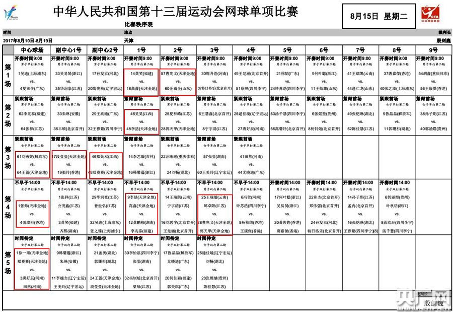 據(jù)了解,單打、雙打比賽項目均采用3盤2勝平局決勝制。18日、19日將分別進(jìn)行雙打和單打決賽。