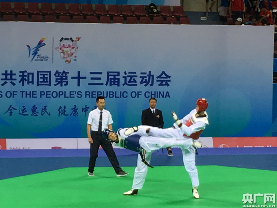 央廣網(wǎng)天津9月5日消息(記者褚夫晴)5日晚,第十三屆全運(yùn)會(huì)跆拳道項(xiàng)目決出兩塊金牌,在男子68公斤級(jí)決賽中,里約奧運(yùn)會(huì)冠軍、新科世錦賽冠軍趙帥8:5力克廣東趙攀鋒,首奪該項(xiàng)全運(yùn)會(huì)金牌。青海劉福寧和河北宋國(guó)棟獲得季軍!