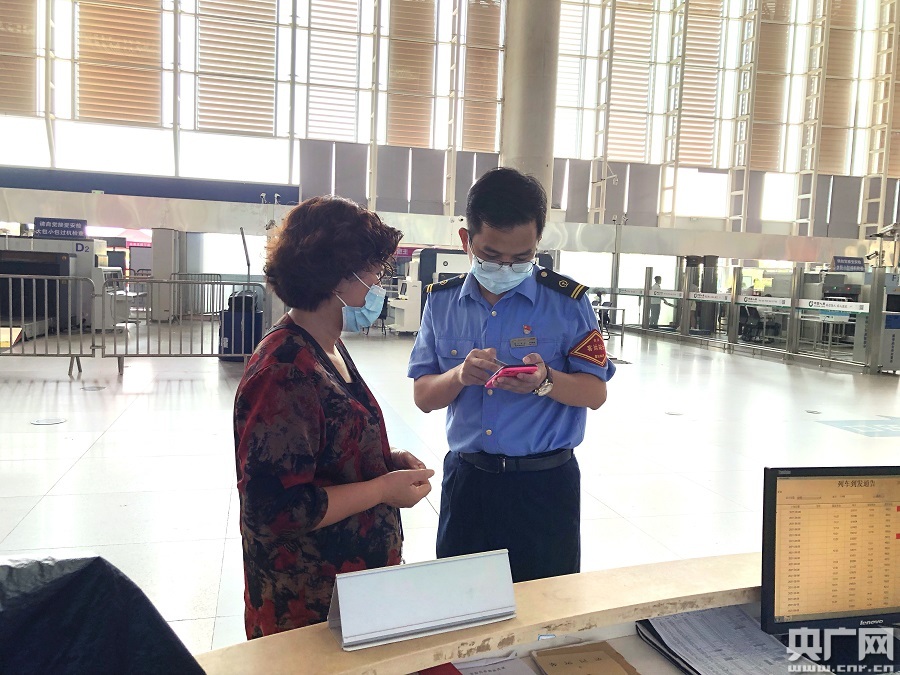 “請進站旅客戴好口罩,打開‘閩政通’點擊健康碼,間隔1米有序進站……”7月31日早晨7點,廈門北站值班站長吳振斌提前來到南進站口上崗值守,不斷地提醒進站旅客遵守防疫規(guī)定,并協(xié)助查驗健康碼。為了保障旅客出行安全,廈門北站配合當(dāng)?shù)匦l(wèi)生防疫部門建立了車站防疫檢測點,組織旅客有序排隊,逐一測量體溫,查驗健康碼,宣講防控知識。