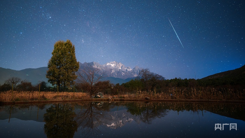 云南麗江上演雙子座流星雨“星空大片”