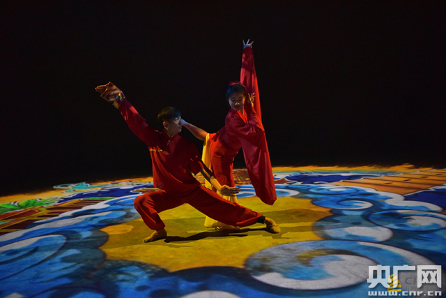 《樂(lè)享春節(jié)》以手繪年畫、中國(guó)民族舞蹈與三維投影技術(shù)相結(jié)合的表現(xiàn)形式,通過(guò)舞蹈演員與中國(guó)版圖互動(dòng),展現(xiàn)發(fā)生在中國(guó)廣袤大地上豐富多彩的文化民俗和喜慶祥和的春節(jié)圖景。