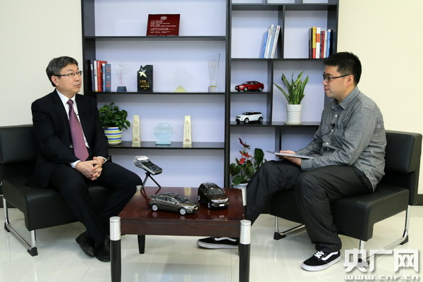 奇瑞汽車董事長兼總經(jīng)理尹同躍接受記者專訪(央廣網(wǎng) 張曈 攝)