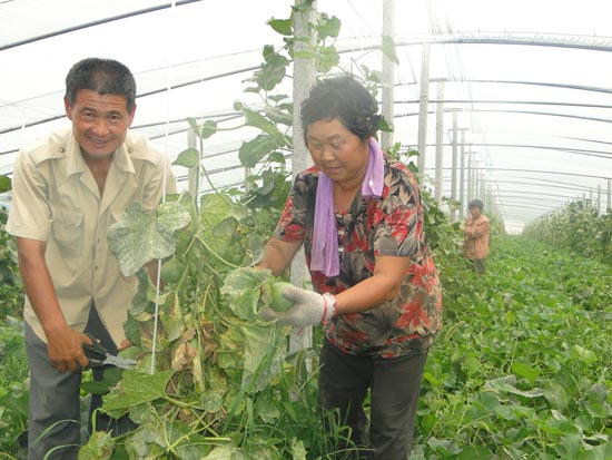 聯(lián)潤土地股份合作社蔬菜大棚豐收,村民也成為了合作社工人。(資料圖片)